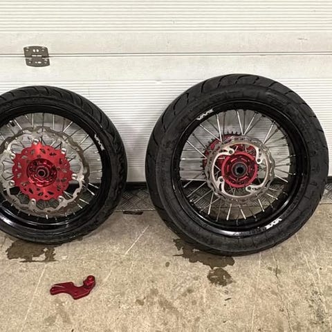 Myydään nätit vmx 17 supermotovanteet, etukumi 110/70, ja takakumi 150/70 joka alkaa olemaan vaihtokunnossa.