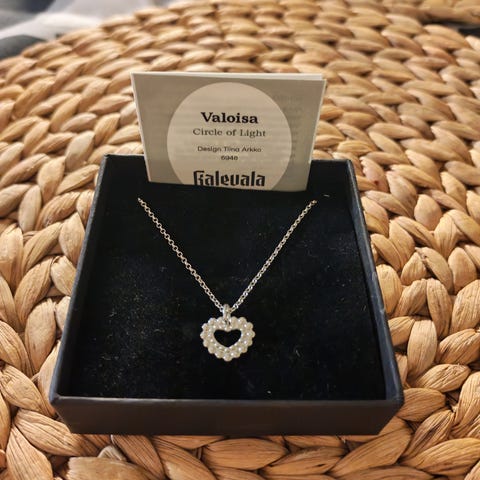 Hopeiset Valoisa korvakorut sekä kaulakoru. Korua ei ole köytetty, korviksia on. Ketju 42/45cm. Erikseen myytynä 50e kpl. Hintaan lis.postit.