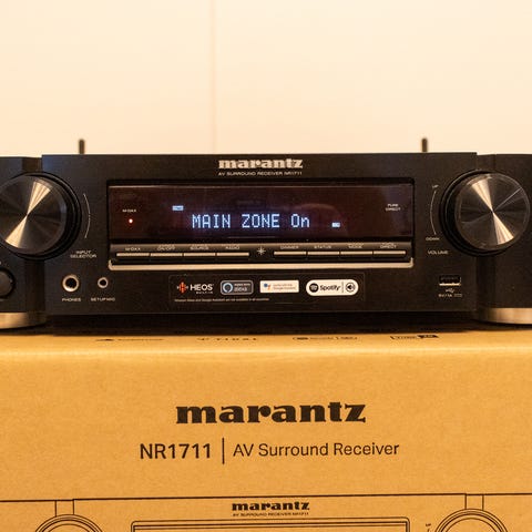 Features: Marantz HDAM amp design, Eco mode, Zone 2, HEOS app control, AirPlay, internet radio, and high‑resolution audio playback (FLAC, ALAC, DSD)