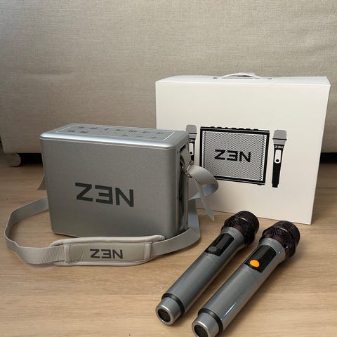 Mukana kannettava kaiutin, langaton mikrofoni ja kaukosäädin. Vielä ehtii pukinkonttiin! 🎶