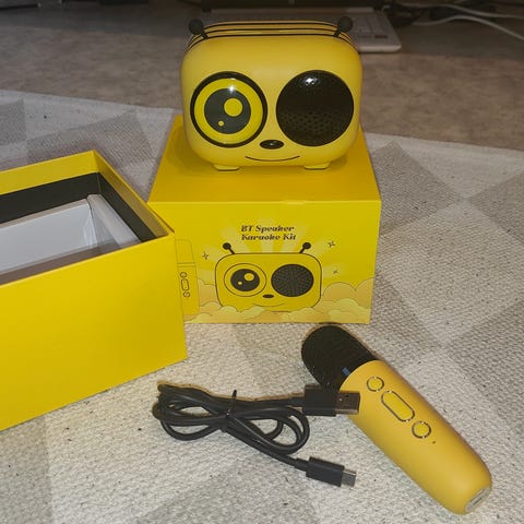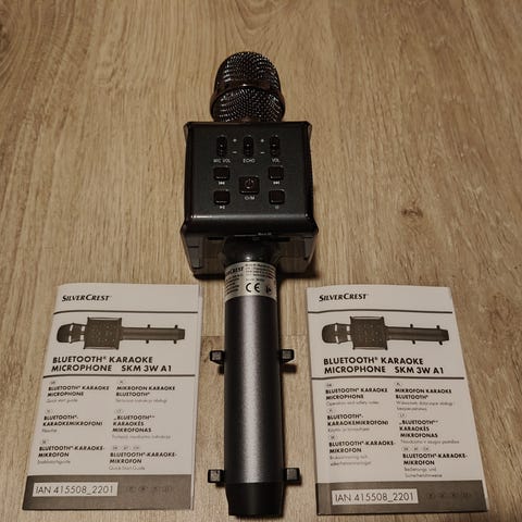 Erittäin vähän käytetty ladattava karaoke/bluetoothkaiutin langattomalla mikrofonilla ja äänen tallennuksella (Micro sd -korttipaikka). Kaiuttimen lataus usb C -kaapelilla.