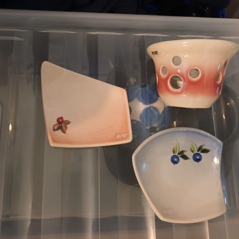 Kuu ja tähdet tuikkulautanen vaihtuu juhlamokka kahvipakettiin,ehjä kuusta kulunut harmaa väri pois.Nouto Iin Kuivaniemi.