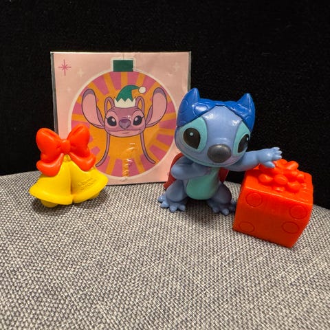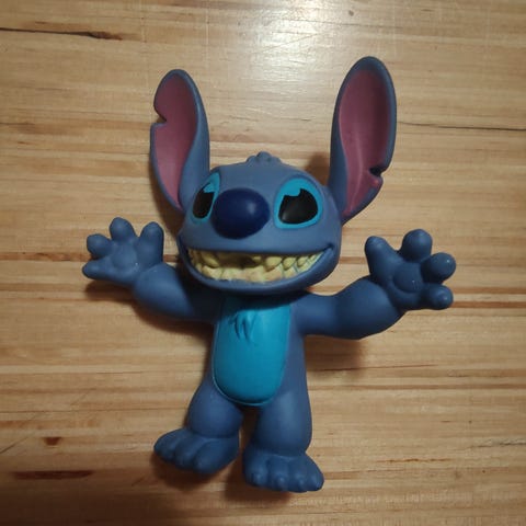 Suomesta ostettu Lilo ja stitch figuuri tavaroineen.