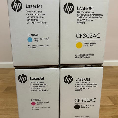 Mukana yhteensä 6 alkuperäistä HP-värikasettia, kaikki uudet ja käyttämättömät, alkuperäisissä suojapakkauksissa: