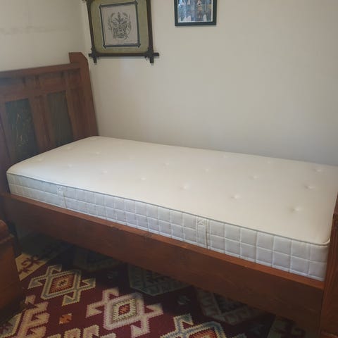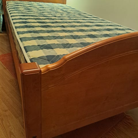 Sängyn jaloissa on pieniä kolhuja (imuroinnin aiheuttamia?).