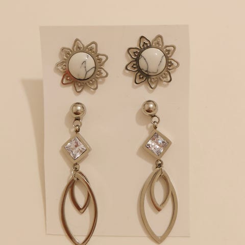Korvakoru setti, edullinen second hand joululahja? ♥️🎄 Muistaakseni nappi korut hopeaa, mutta en voi luvata. Korut desinfioitu. Useita settejä myynnissä..tulee nätissä korupussissa 💝 MMM, en varaile nopeat syö hitaat 👯