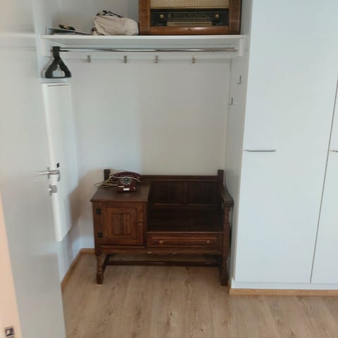 Hakusanat: naarmut, vintage huonekalut, kolhut, istuinpehmuste, puhelinpenkki, puu, vintage, retro, kaappi, kukkakuvio, säilytystila, kulunut