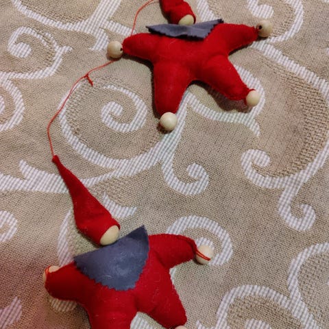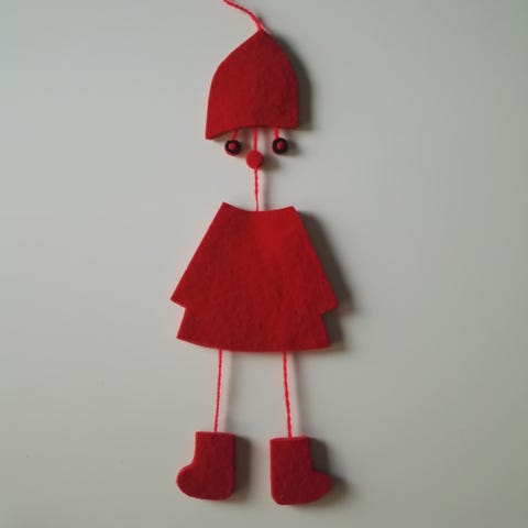 Kartionmallinen huopatonttu. Pituus pohjasta tupsuun asti 44 cm.