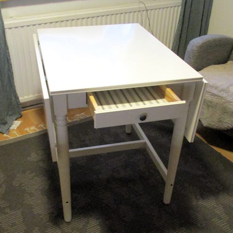 Annetaan kaksi valkoista ruokailuryhmän tuolia. Jäänyt meille ylimääräiseksi. Naarmuja löytyy jonkin verran ja toisen tuolin selkänojan takaa puuttuu pala. En varaile, nopea nouto, perjantaina lähtee kaatikselle. Kissatalous.