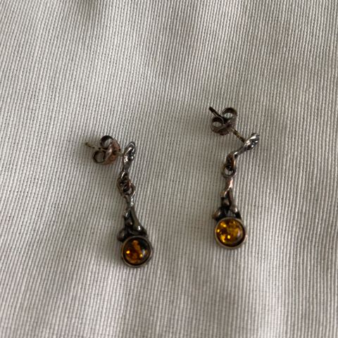Hyväkuntoiset meripihkakorvakorut. 5e.