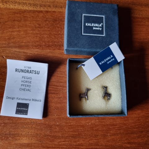 Vähän käytetyt pronssiset Kalevala Runoratsu nappikorvakorut.