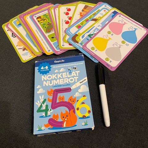 Viskari Eskari puuhavihko puuhakortit aakkoset aapinen laskenta alkuopetus