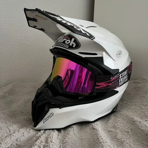 Airohin mopokypärä ollut 2 kesää ihan skootteri ajoa varten käytössä, eisiis missään off road hommissa käytetty. Lasit kuuluu pakettiin mukaan.