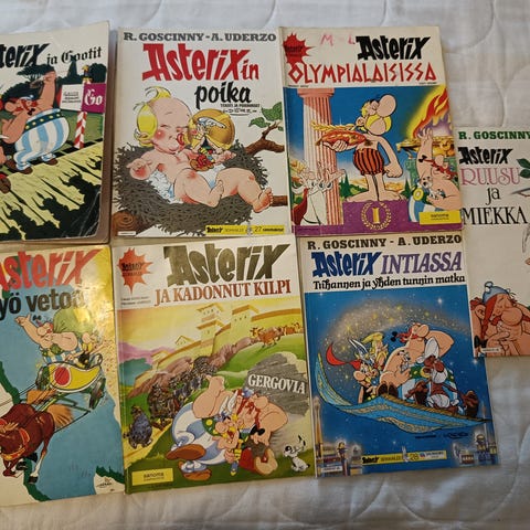 Myydään 26 lehden kokoelma Asterix-seikkailuja. Vähintään 14 lehteä on varmistettuja alkuperäispainoksia (sisältävät merkinnän alkuteoksesta ja alkuperäisestä julkaisuvuodesta).