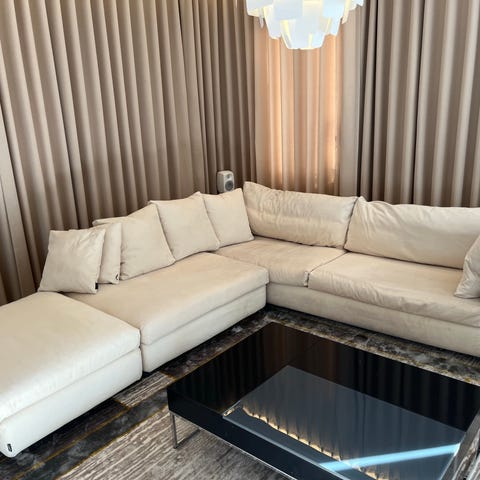 Sohvan leveys on 198 cm. Eli mahtuu pieneenkin tilaan.