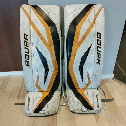 Bauer Supreme One70 jääkiekkomaalivahdin patjat, koko 30+1, junior-malli. Varustettu valkoisella värillä ja suunniteltu jääkiekon maalivahdin käyttöön.