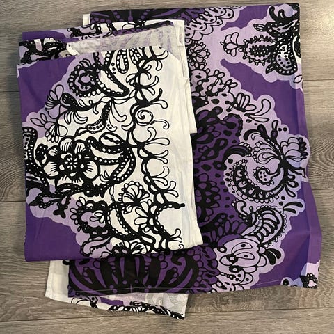 Myydään tarpeettomana Tanja Orsjoen Vallilalle suunnittelemat kauniit Mandariini sivuverhot 2kpl.