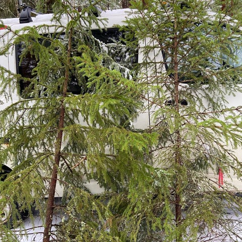 Joulukuusi, joka on pienempi kuin normaali kuusi. Viimeisessä kuvassa näkyy parhaiten minkä pituinen
