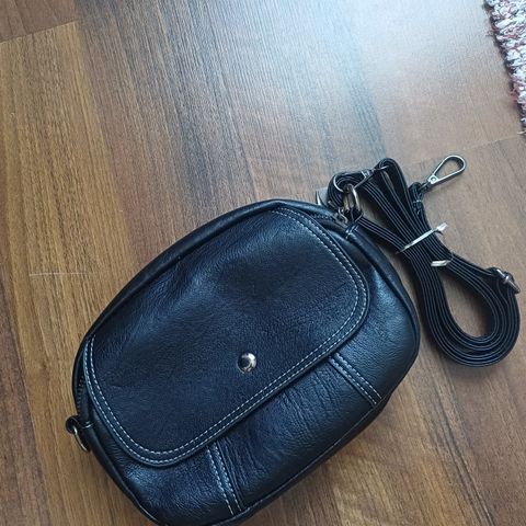 Nahkainen laukku, jossa on olkahihna ja kantokahva. Laukku on valmistettu nahkamateriaalista, ja se soveltuu erilaisten esineiden kantamiseen. Sopii sekä miehille että naisille.