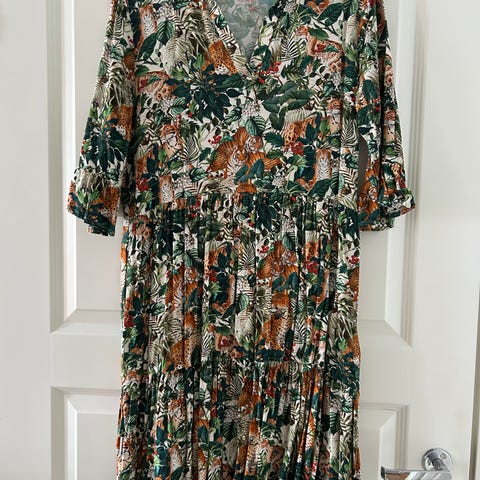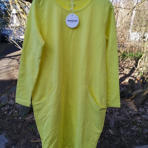 Metsolan Balloon collegemekko koko L. Pidempi malli, olka-helma pituus n. 105cm. Materiaali napakkaa, mutta hyvin joustavaa collegea, 95% puuvillaa / 5% elastaania. Väri punaisenruskea / ruoste / tiilenpunainen (lapussa lukee Pompeia). Mekon etukappaleella kaunis leikkaus, johon upotetut taskut. Mekko on käyttämätön, voi antaa vaikka lahjaksi.