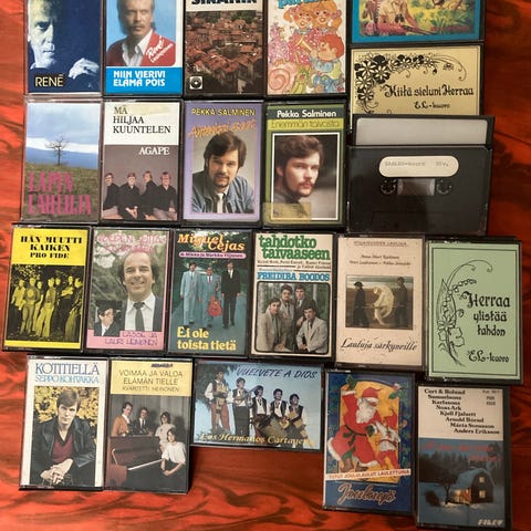 Annetaan pussillinen kasetteja. Roxette, suomihitit jne. Nouto Pere