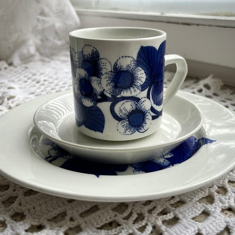 Arabia Rentukka astiasto sinisellä kukkakuviolla