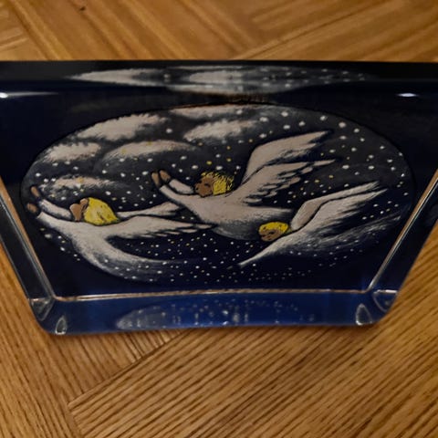 Lasikortti Lumen hiljaisuus ja lasifiguuri Lasinpuhaltaja. Ehjä, käyttämättömät.