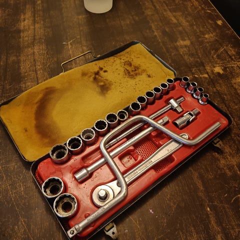 Vanha hylsysarja. Puhdistettu ja toimivuus testattu. Kaikki osat tallella.