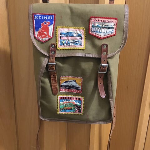 Helmillä kirjailtu naisten kangaslaukku, jossa on koristeellinen kuviointi ja pyöreät puiset kahvat. Kassi on valmistettu kankaasta ja pohja on vahvistettu nahkamateriaalilla. Sopii arkipäivän käyttöön ja erilaisiin tilaisuuksiin. Kahvat kuluneet. Pohja sametin kaltainen.