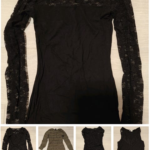 Kiva vaatepaketti juhlakauteen. Setti sisältää kaiken, mitä kuvissa näkyy, eli uuden ja käyttämättömän neuletakin, erittäin siistikuntoisen pitsipaidan sekä hyväkuntoisen Zaran hopean hameen. Setin kaikkia vaatteita voi käyttää yhdessä ja erikseen!