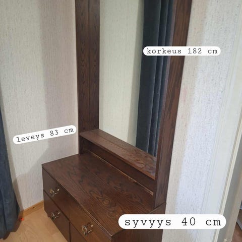 Kuvien mukainen pirteän oranssi retro peilikaappi. Ehjä, yksi hylly puuttuu, mutta ei haittaa käyttöä, saa ainakin hieman korkeampaakin tavaraa kaappiin. Likainen, putsaaminen jää ostajalle, muuten hyvässä kunnossa.