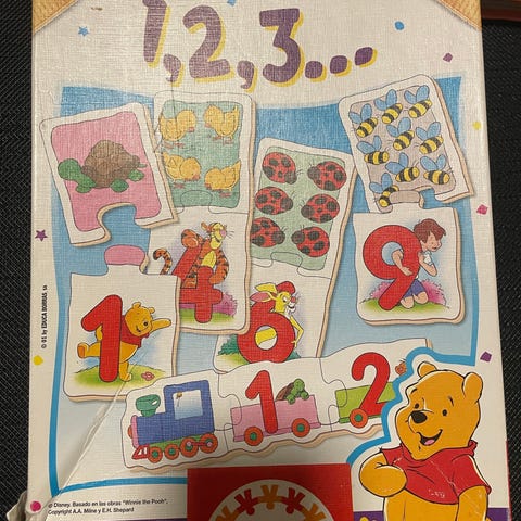 Ravensburger Disney Winnie the Pooh korttipeli, ikäsuositus 3-8 vuotta. Yksi kortti ainakin vähän kärsinyt (kuvassa).