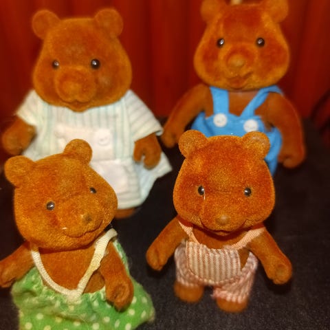 Myydään erittäin hyväkuntoinen Sylvanian Families Karhuperhe alkuperäisasuissaan. Mukana tulee myös paketissa mukana ollut hampurilainen.