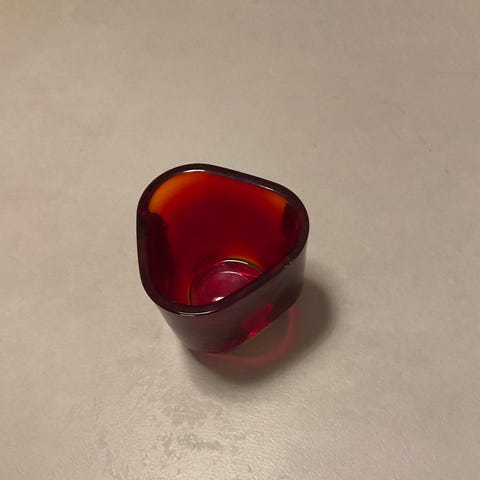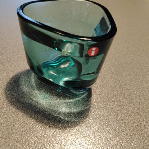 Iittala Tris tuikkukippo vihreä lasia. Kolmikulmainen muotoilu, sopii koriste- tai käyttöesineeksi.