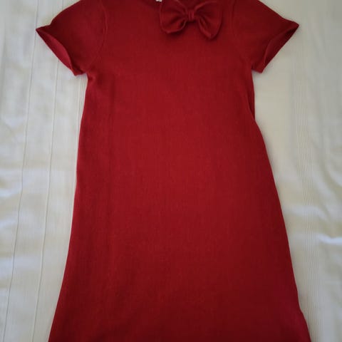Hyväkuntoinen mekko jouluksi. 134cm. Taskut ja kauluksessa rusetti.