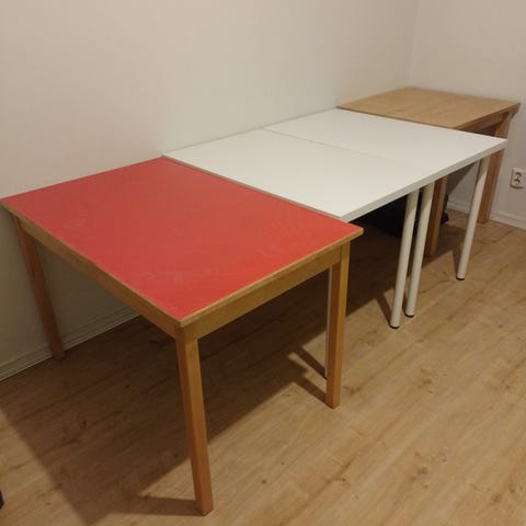 Tuolit ok kunnossa. Pöydässä paljon sanomista. Myös yksi jalka vaatii kunnostusta.