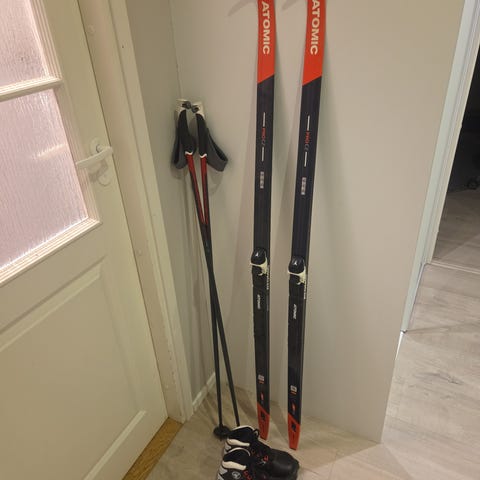 Atomic karvapohjasukset 150cm +sauvat 115cm +monot 36 2/3