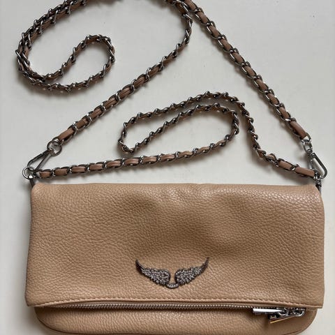 Duffy merkkinen naisten olkalaukku vaaleanbeigeessä värissä. Laukussa on useita taskuja ja säädettävä olkahihna.