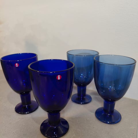 Iittala Verne, siniset jalalliset lasit, 4kpl. Sopivat käytettäväksi juomalaseina.