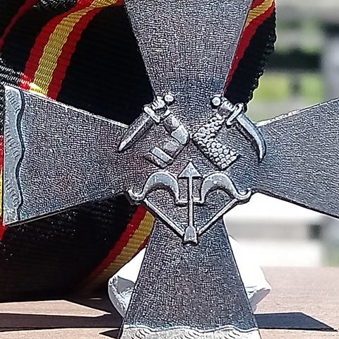 Kannaksen Risti. Halkaisija - 40*40 mm. Valmistajan leimalla. Siististi