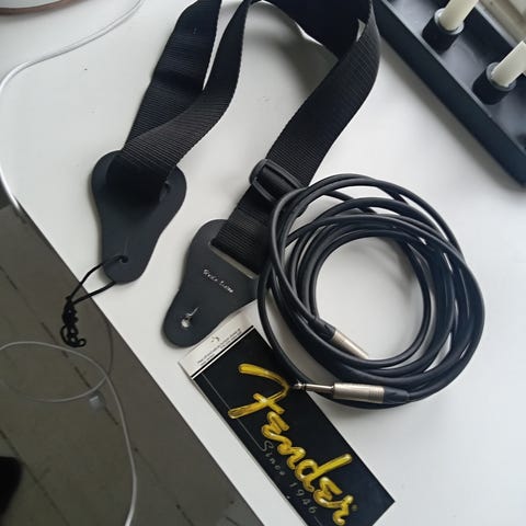 Myydään joustavasta materiaalista tehty Fender kitarahihna.