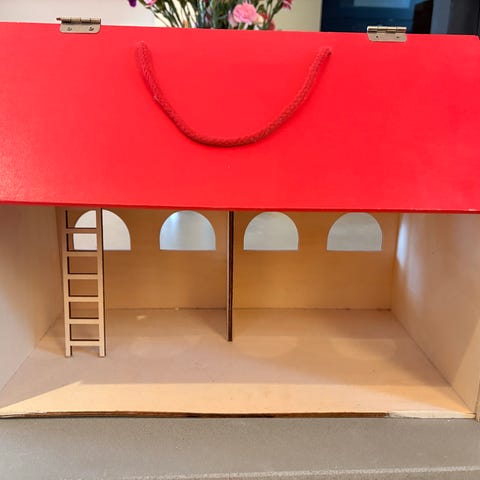 Itsetehty tosi vähän leikitty talli, puinen. Tästäpä heppatytölle tai -pojalle. Tässä useampi karsina Schleicheille. Koko 49,5 cm x 90 cm