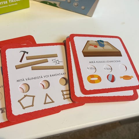 Kaksi erilaista peliä. Mainiota eskari-ikäiselle ja pienelle koululaiselle. Lukemaan opettelevalle
