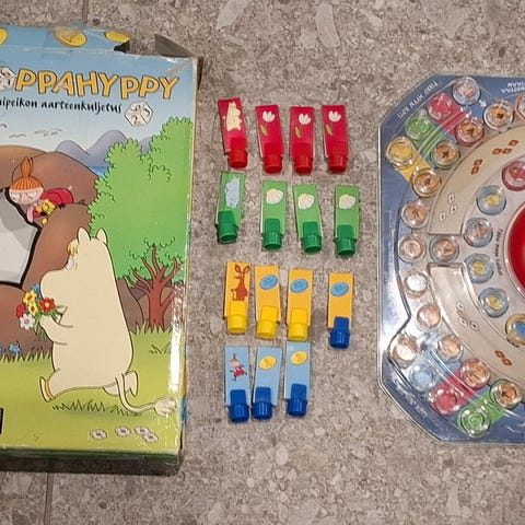 Muumi Noppahyppy lautapeli on noppapeli, joka muistuttaa Kimbleä.