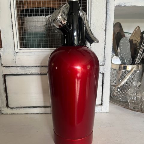 Sifonipullo, jossa metalliverkko suojaamassa lasipulloa. Pullo on varustettu mustalla muovikorkilla ja metallisella suuttimella. Paino 2430 g, korkeus 35 cm, 40 cm halkaisia.