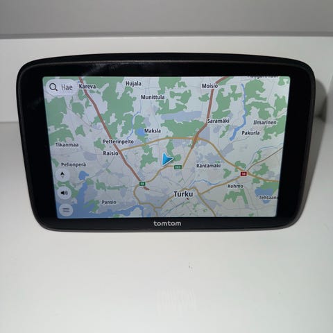 TomTom GO 510 navigaattori, sisältää USB-kaapelin ja jalustan. Laite tarjoaa käyttöliittymän suomeksi ja sisältää Euroopan ja USA:n karttatiedot . Näytön koko 5 tuumaa. Hp 70€/tarjoa.