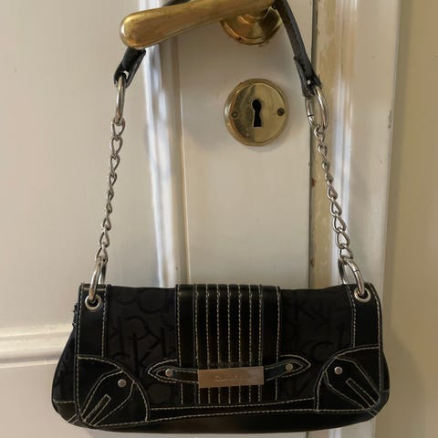 Laukussa käsihihna, sivulla tasku,suljetaan vetoketjulla