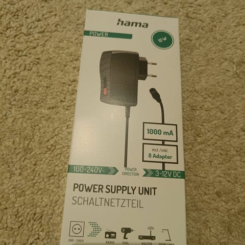 Kaksi kertaa käytetty Hama yleisvirtalähde, kuvissa tarkemmin tiedot. 8 erilaista liitintä eri tietonemalleille.