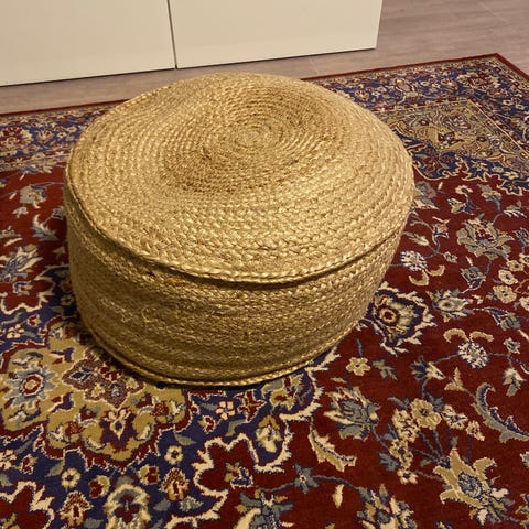 Jysk musta säilytysrahi, jossa verhoiltu pehmeä kiiltävä samettipinta ja painikkein koristeltu istuin. Rahi toimii sekä istuimena että säilytystilana. Musta väri ja yksinkertainen muotoilu sopivat monenlaiseen sisustukseen.