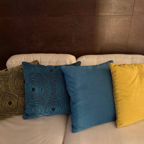 Tyynyjen mitat: pituus 80cm ja leveys 50cm, niitä on 3 kpl, hinta on yhteensä 30e